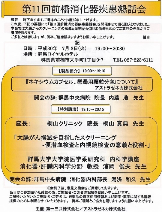 その治療の後には、夜には前橋市内で講師として内視鏡治療の講演を行いました。