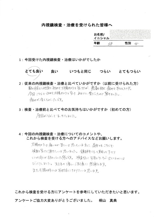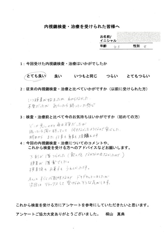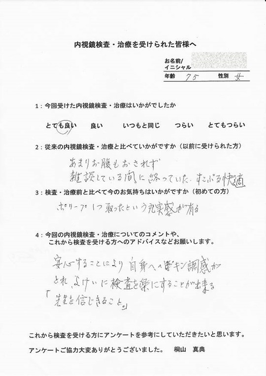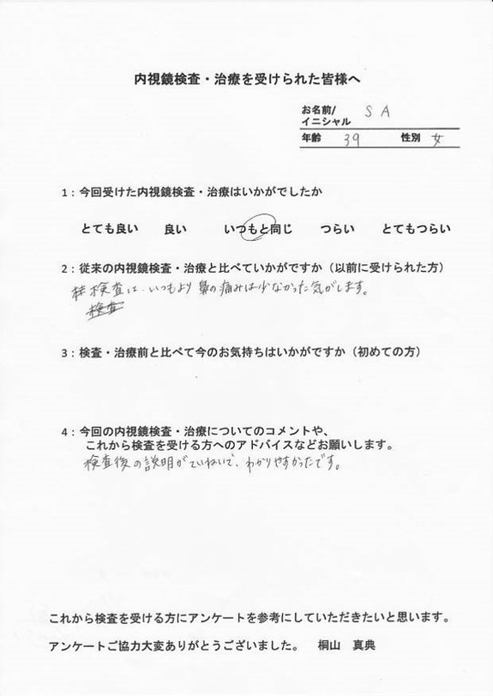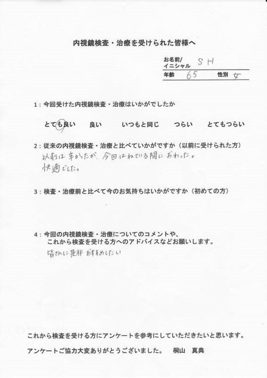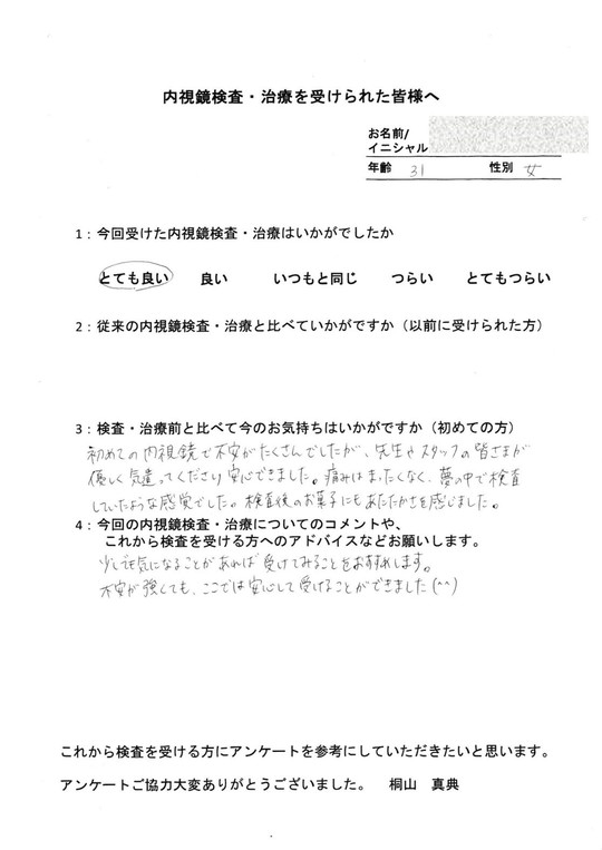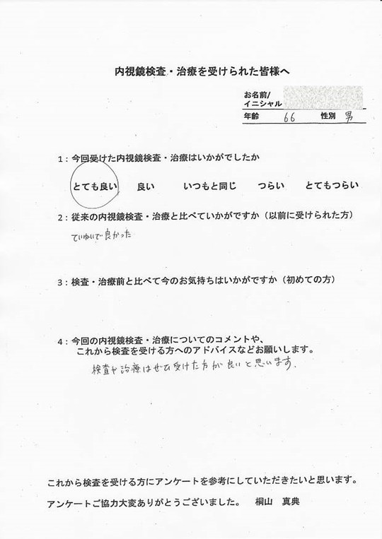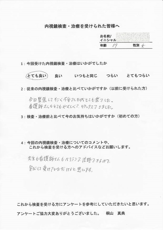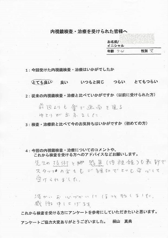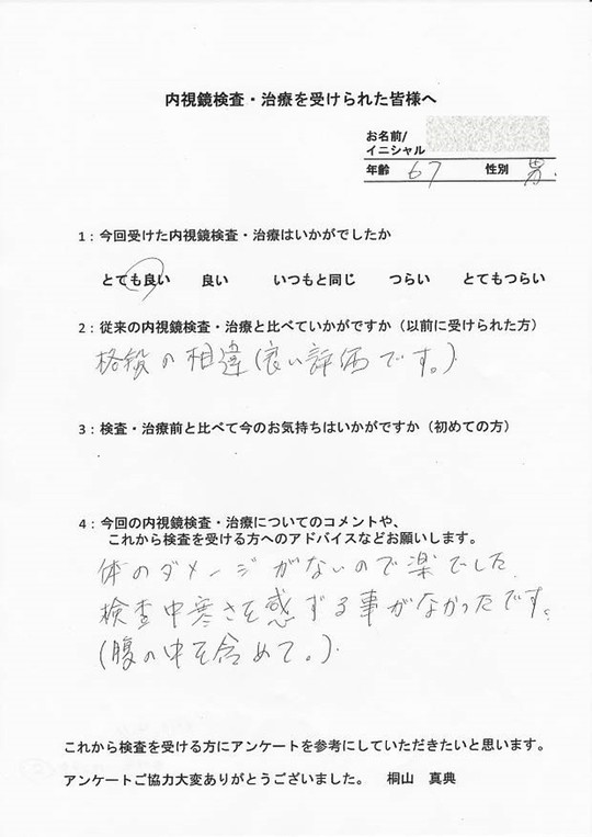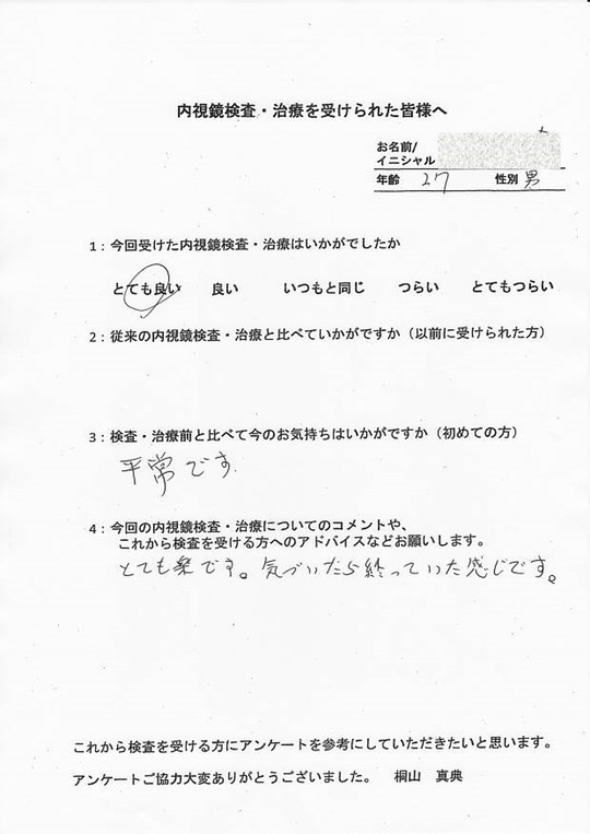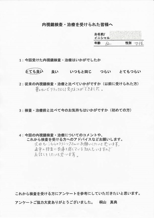 以前他で受けてつらかった方・初めてでとても不安だった方・病気が心配だったけど検査を受けて問題無くて安心した方など、とてもたくさんの声をいただいています。