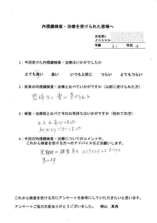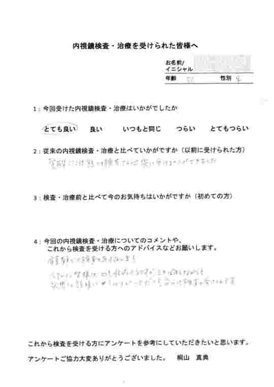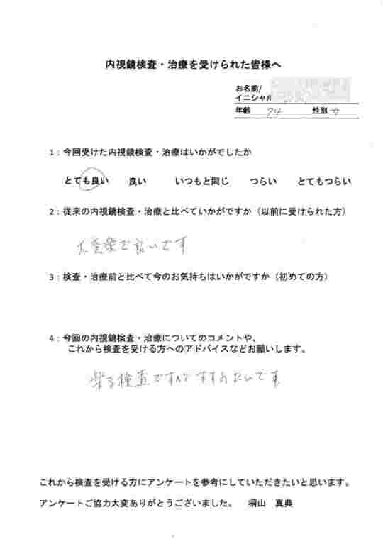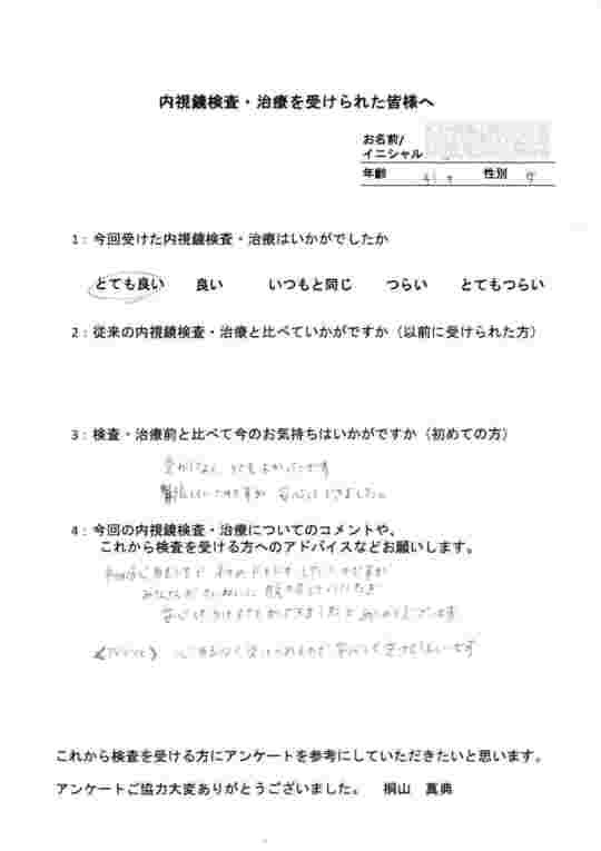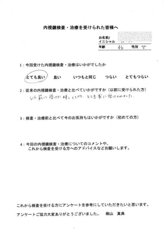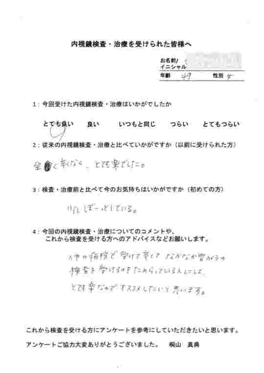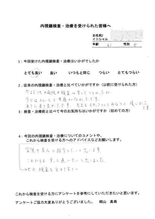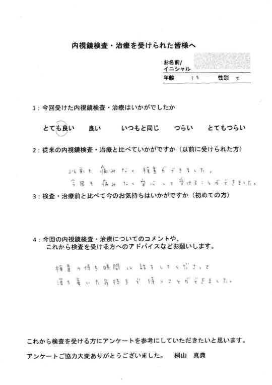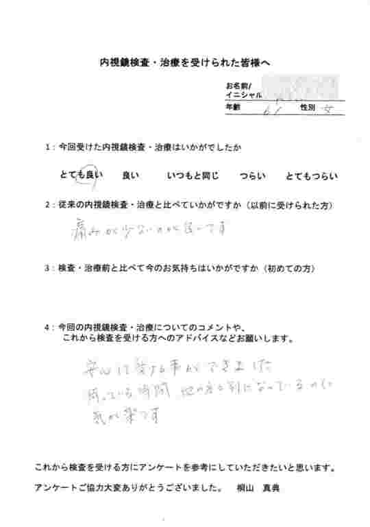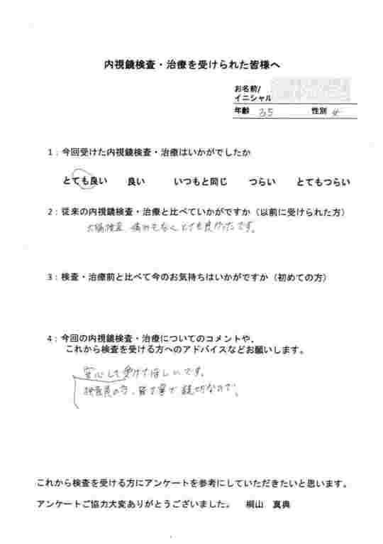 以前他で受けてつらかった方・初めてでとても不安だった方・病気が心配だったけど検査を受けて問題無くて安心した方など、とてもたくさんの声をいただいています。