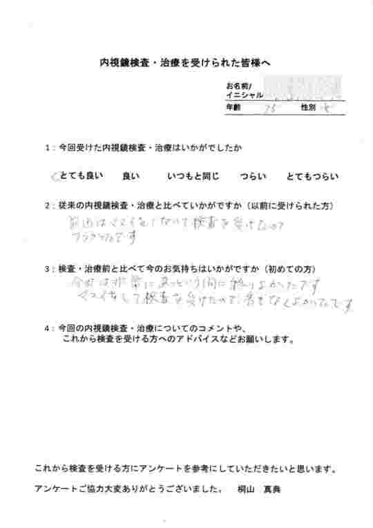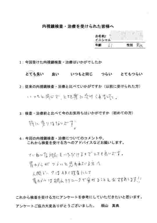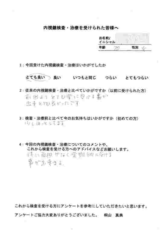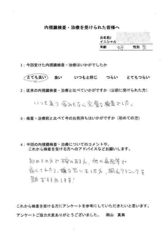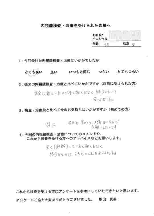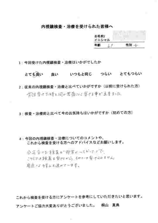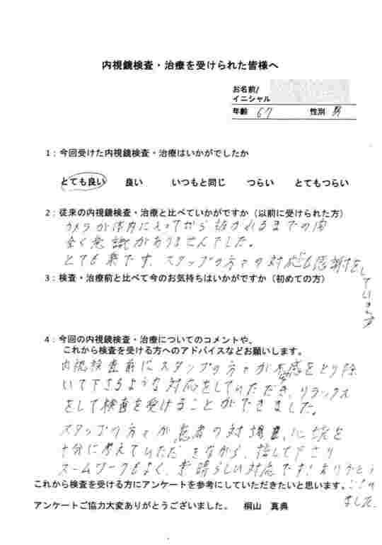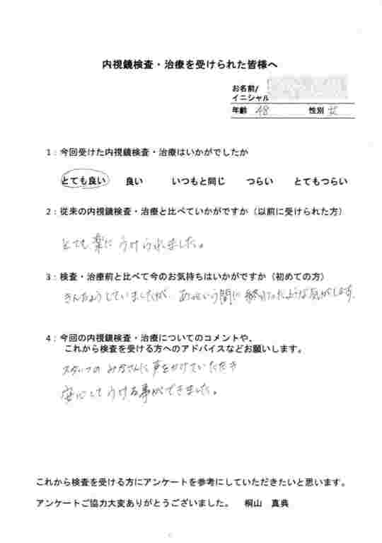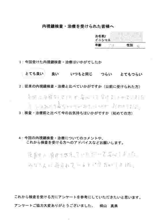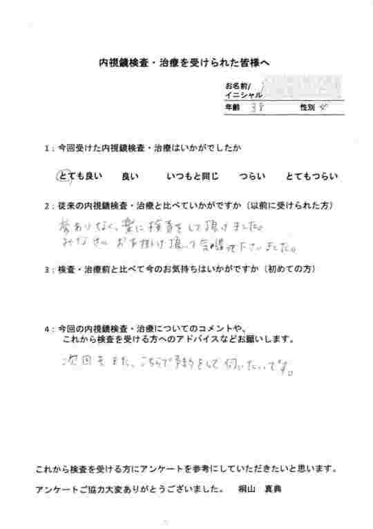 以前他で受けてつらかった方・初めてでとても不安だった方・病気が心配だったけど検査を受けて問題無くて安心した方など、とてもたくさんの声をいただいています。