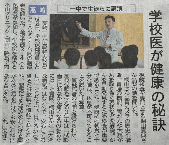 講演会の様子が上毛新聞に取り上げられ、10月10日の新聞に掲載されました。